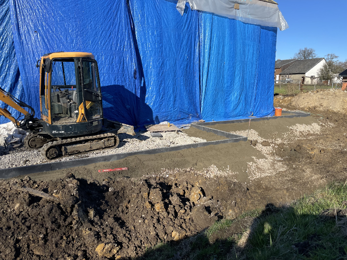 Terrassement+ réalisation d’une dalle en béton pour un futur abris de jardin